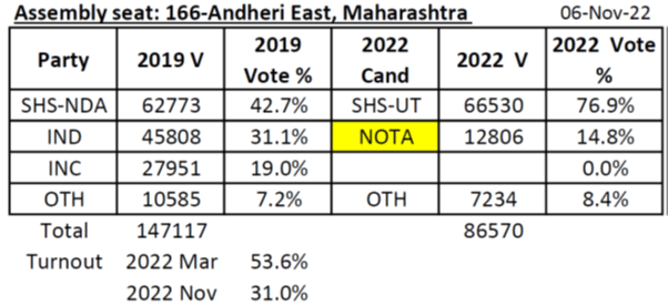 The principal beneficiary was the Bharatiya Janata Party (BJP). They consolidated their position across the board, retained three seats, gained one, and made strong surges in two, while tactically abstaining from the contest in Andheri East, in Mumbai.