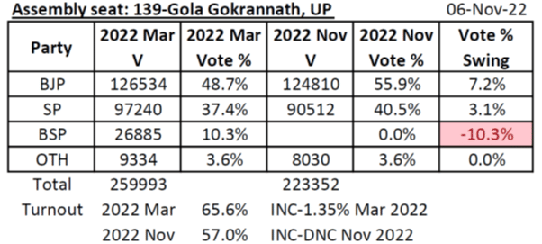 This was a solid win for the BJP in a straight contest with the Samajwadi Party (SP). The key points to be noted here are: