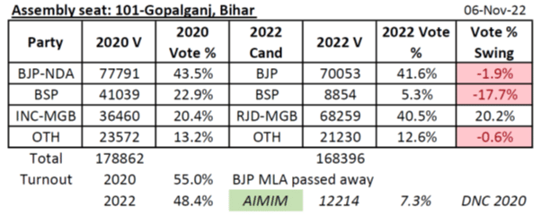 The party has, in effect, taken over the JD(U) vote base in this seat. Note how the RJD got roughly the same vote share in 2022 as last time.