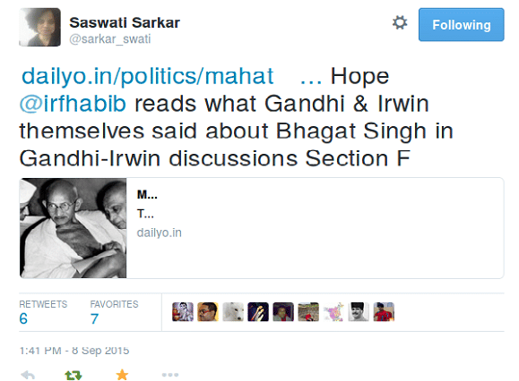 Under these circumstances, the most satisfactory conclusion most based on Prof.Habib’s tweets on Manmathanath Gupta, would be, that he remains till date unaware of Gupta’s memoir which was published as early as 1969. Prof. Habib’s scholarly works appeared in 1982 and 2007 respectively. Researchers usually do substantial homework on their subjects before interviewing them. Yet, if this conclusion were to hold, it would appear that Prof. Habib interviewed Manmathanath Gupta for several days, without knowing that Gupta had already published his memoir. But, even this favorable conclusion is somewhat tenuous as Prof. Habib has cited the above memoir in The Congress and the Revolutionaries in the 1920s but not entirely ruled out since the work had another author. Equally important, Prof. Habib remains unaware of what Gandhi wrote about the involvement of the Congress Working Committee (which included Nehru) as to his negotiations with Viceroy Irwin leading to the Gandhi-Irwin pact, and his final acceptance of the terms Irwin provided. He also seems to be unaware of multiple statements by Gandhi and Irwin on how Bhagat Singh was kept out of Gandhi-Irwin treaty based on mutual consent.