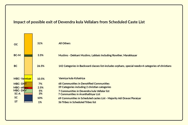 That said, let us analyse the impact of a move to the MBC list. In such a case, the rational thing to do will be to take the share of the Devendra Kula Vellalar in the population and add it to the MBC category.