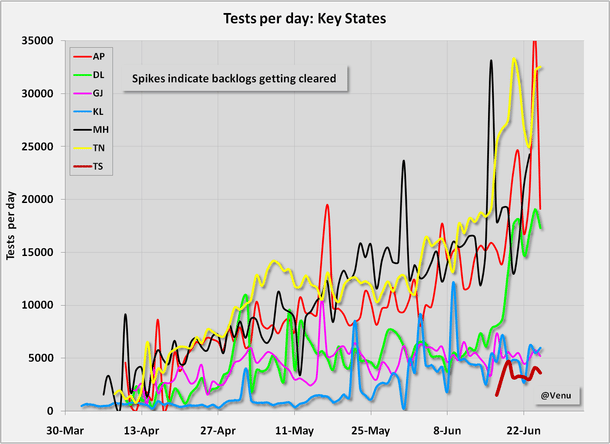 Telangana is today still at an appalling testing point which well-managed states had already crossed a month or two ago: just 70,934 tests as on date, compared to double that in smaller, neighbouring Chhattisgarh, ten times more in Andhra, and barely a tad more than tiny Goa (58584 tests).