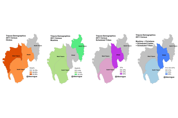 So, we see that two-thirds of Tripura’s electorate can be played and swayed by the secular parties using the identity card. This is how the Congress, initially, and then the Communists held on to power for so long. And it is precisely this repulsive barrier which the Bharatiya Janata Party (BJP) breached in 2018.