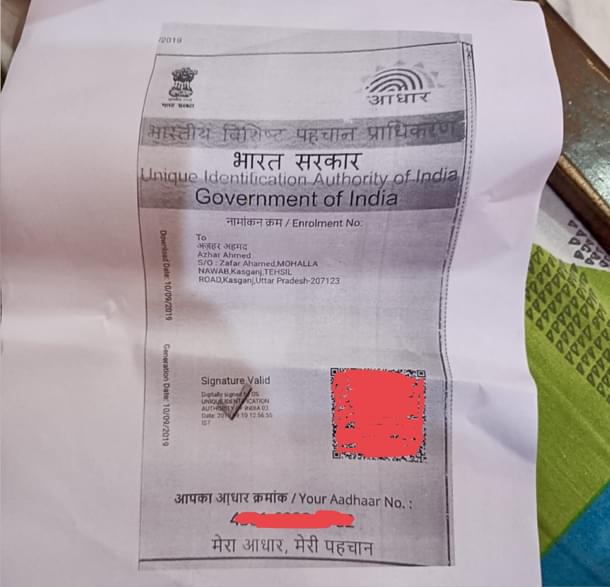 Two months ago, when Rahul returned from his routine “official trip”, she emptied his bag to give the bag a wash. Rahul was not home at that time. While taking things out of the bag, she found an Aadhaar Card with the name Azhar Ahmad. The card said he was son of Zafar Ahmad, a resident of Kasganj district in Uttar Pradesh.