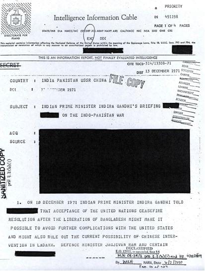 Some CIA records declassified as a result of my request by the agency were duly sent to me. They all related to the free flow of information from someone in the Indira Gandhi Cabinet in 1971.
