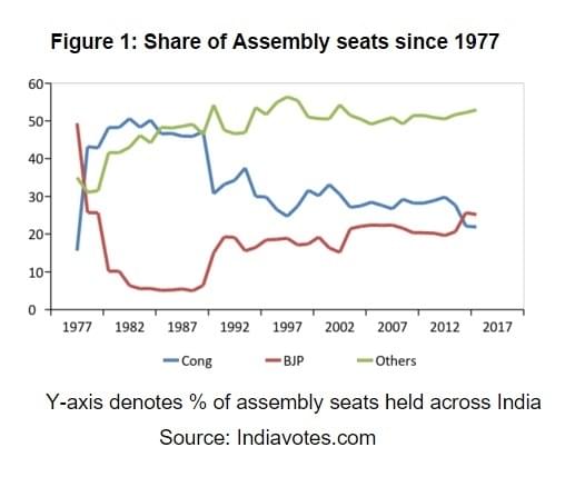 A negative turn in BJP’s fortune over 2015 has not meant that the Congress is reviving. For the first time since it was formed in 1980, the BJP moved ahead of Congress in terms of number of MLAs it has across India in 2014. This is something BJP has never been able to achieve before, even when it was in power from 1998 to 2004. The string of assembly election losses for the Congress post Karnataka 2013 has really hurt its state level position, and Congress is unlikely to reverse this trend going into 2016. The only time Congress lost its pole position as the centre of Indian politics was post 1977, when the first non-Congress government came to power almost across India.