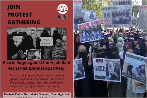Two days after the Karnataka high court began hearing the issue, an organisation called All India Lawyer Association for Justice held a protest against ‘hijab ban’ at Karnataka Bhawan in New Delhi.