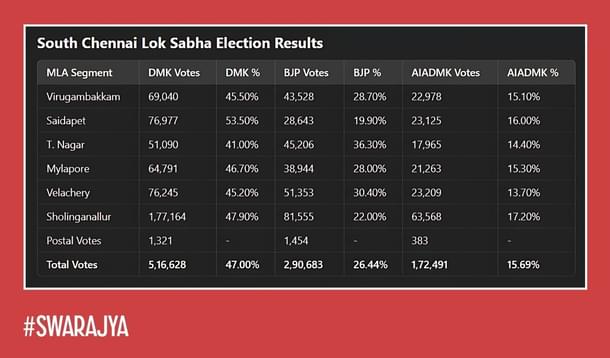 Two such seats were in Chennai city, i.e. South Chennai and Chennai Central.