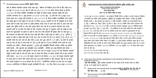 10. FIR by constable Neeraj (number 261/2023 filed at City Nuh police station on 1 August)