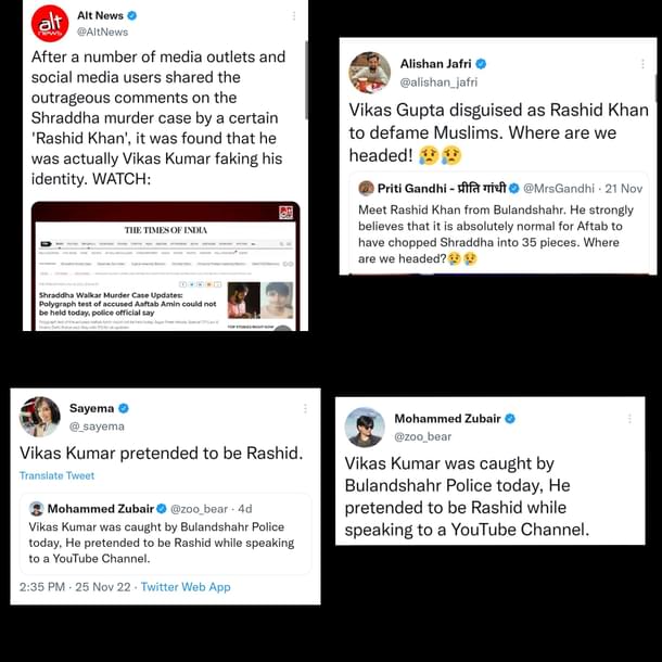 Altnews’s controversial co-founder Mohammed Zubair, wrote that Vikas “pretended” to be Rashid.