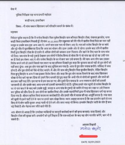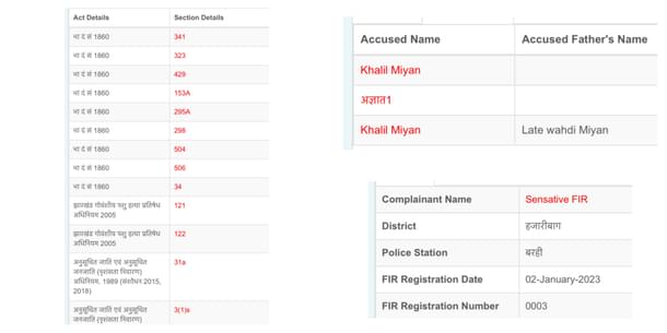 The FIR (number 3/2023) was filed at Barhi police station in Hazaribagh district of Jharkhand on 2 January.