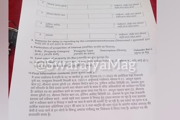 Based on this statement, the police booked all the named accused under IPC section 506 (criminal intimidation) and sections 3/5 of the Madhya Pradesh Freedom of Religion Act, 2021.