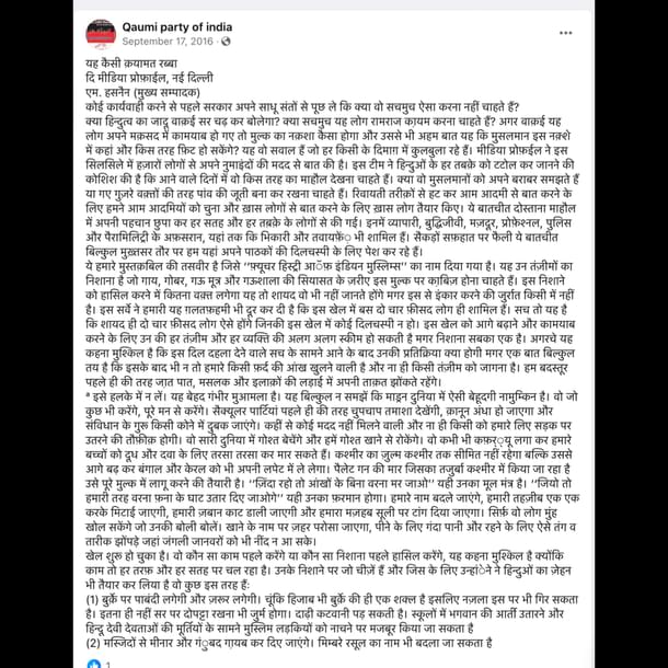 Although most posts made from this account have been deleted, its description says, ‘Qaumi party of India is a Muslim-led political party, in short, it is a party of Muslims for Muslims.’