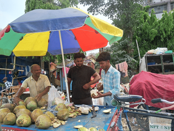 Temperature hovers close to 40 degrees celsius. I stop in the middle of the Begusarai town for nariyal pani. The sitting Member of Parliament (MP) is the khattar Hindu, Union Minister Giriraj Singh. A huge bridge construction is happening on the main highway.