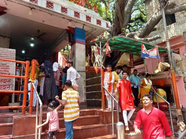 A single queue of the devotees stretches itself over slow steps towards the vigraha of Ma Vindhyavaasini.