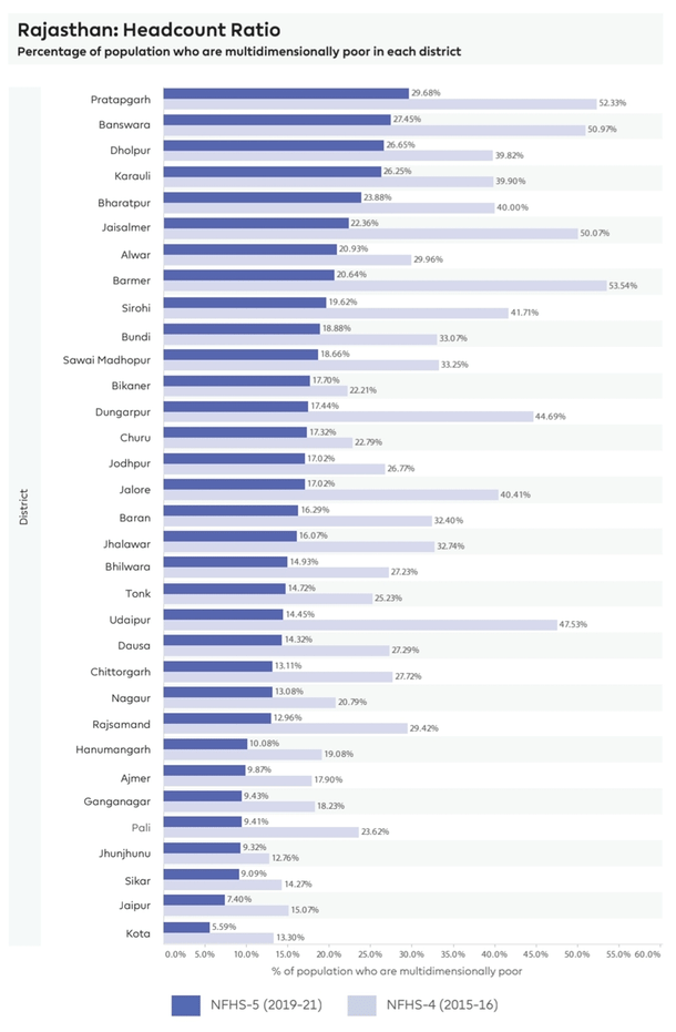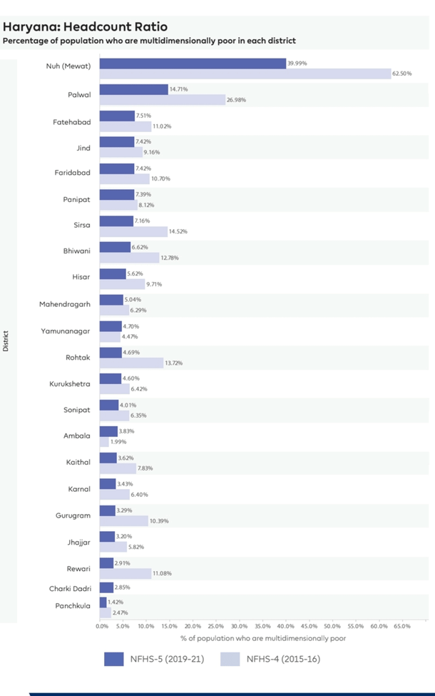 Let us look at the multi-dimensional poverty index for the state. Except for the number in Nuh and Palwal, which are abysmal, the state has done not too badly. (Both Nuh and Palwal are close to national capital region and have sizeable minority populations).
