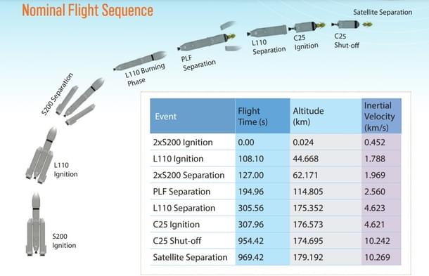 This will be followed by the jettisoning of the protective payload fairing, or the covering over the payload.