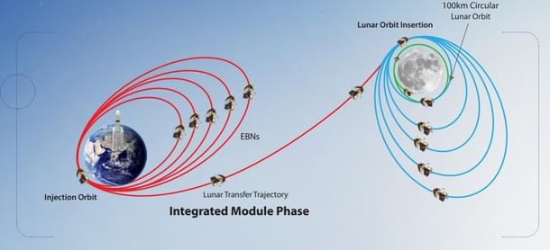 According to some accounts, achieving this trajectory requires the module's engine to undergo five to six burns, resulting in a highly elliptical orbit that brings it close to the moon's path around the Earth.