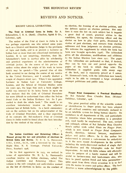 Figure 8: Review of Bose’s book in the Hindustan Review