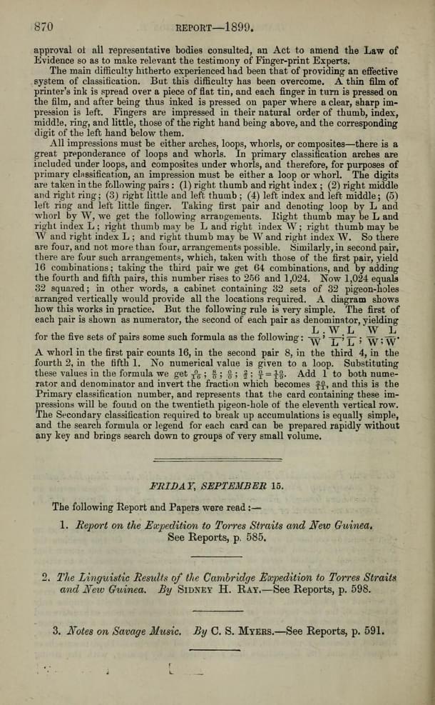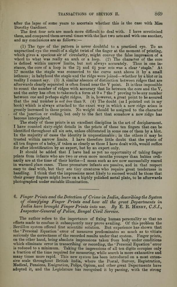 Figure 7: Fingerprints and the detection of crimes in India, paper by ER Henry (From Report of the 69th Meeting of the British Association for the Advancement of Science, 1899)