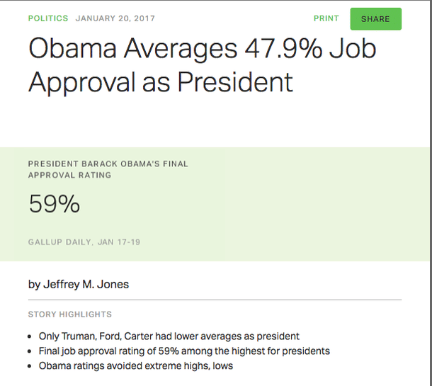 These are numbers as per Gallup Poll, the most authoritative & credible source when it comes to job approval ratings.