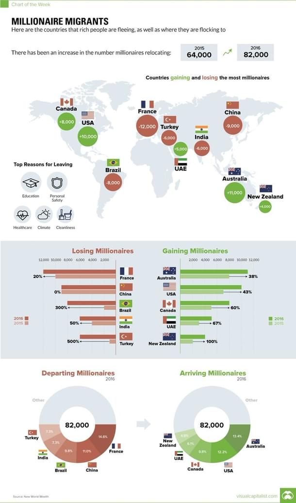 Here’s another sobering visual. France is doing a very good job of scaring off the geese that lay the golden eggs. It is losing more millionaires than any other country.