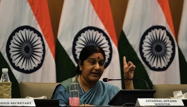 Foreign Minister Sushma Swaraj during a press conference August 22, 2015. (Credits:AFP PHOTO /Chandan KHANNA)