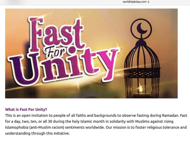 The website describes Fast for Unity as “an open invitation to people of all faiths and backgrounds to observe fasting during Ramadan.”